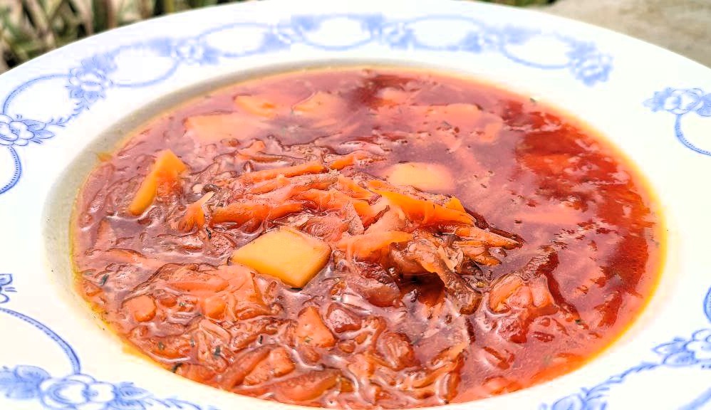 A minap nagyon megkívántam valami friss, savanykás levest – ami azért laktató és tartalmas is – ezért a kertem adta alapanyagokból alkottam egy új receptet. Valójában nem orosz recept, de mivel az oroszok előszeretettel tesznek minden levesbe céklát és káposztát, ezért kapta az „oroszosan” jelzőt. Törekedtem a mindenmentességre, ezért a savanyú ízt nem a tejföl vagy a joghurt adja meg, hanem a friss citromlé.