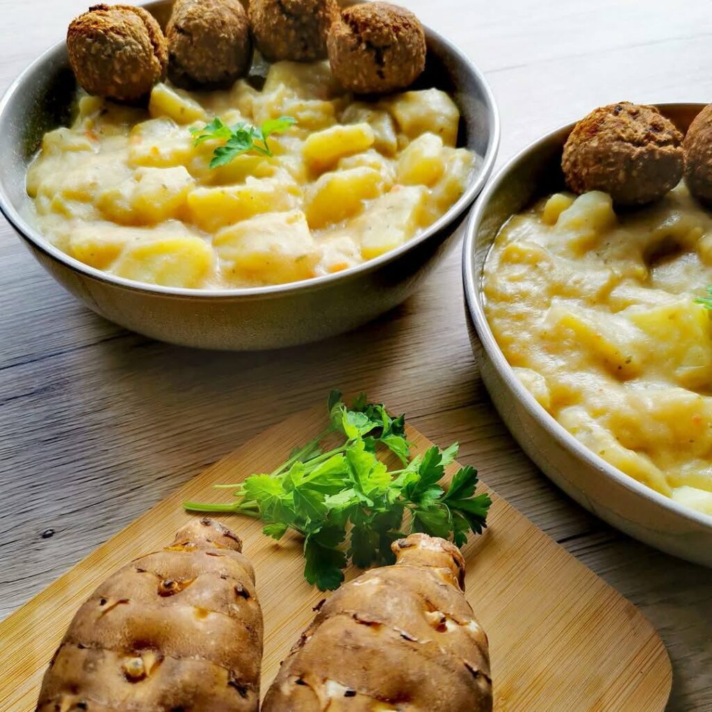 Egy igazán különleges főzeléket készítettünk Ákossal. A csicsóka sokak által nem is ismert, pedig egy nagyon egészséges zöldség. Tele van rosttal, sok inulint tartalmaz. Szuper élettani hatásai vannak. Segít megelőzni a cukorbetegséget, javítja a mikrobiom állapotát, jó hatással van az emésztésre, a szívre és az érrendszerre, segít elkerülni a daganatos betegségeket.